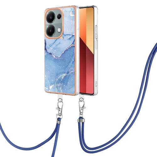 Para Xiaomi Redmi Note 13 Pro 4G Estuche para Teléfono Imd de Doble Cara de Mármol con Galvanoplastia Global con Cordón (Azul 018)