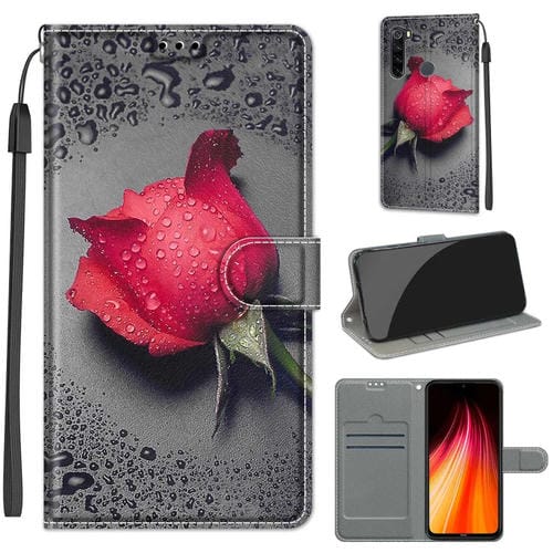 Para Xiaomi Redmi Note 8 Dibujo de Voltaje Dibujo Cierre Magnético Horizontal Flip Pu Funda de Cuero con Soporte y Ranuras de Tarjetas (C14 Black Water Drop Rose)