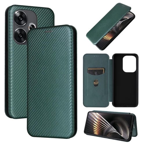 Para Xiaomi Redmi Turbo 3 / Poco F6 Funda de Cuero con Tapa con Textura de Fibra de Carbono (Verde)