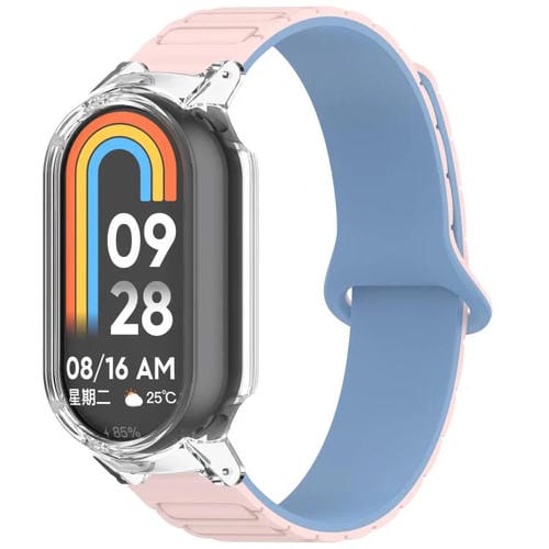 Para Xiaomi Smart Band 9/9 NFC Watch Case Correa de reloj de silicona magnética en forma de I integrada (rosa azul + transparente)