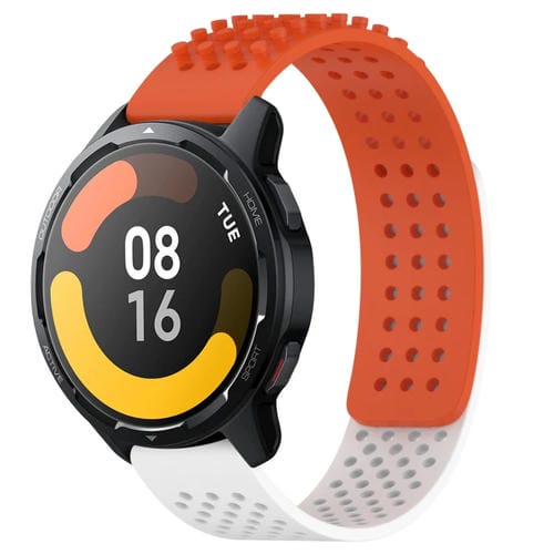 Correa de Silicona para Xiaomi Watch S1 Active con Puntos 3D Transpirables y Orificios 22mm (Naranja + Blanco)