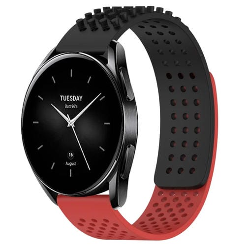 Correa de Silicona para Xiaomi Watch S2 42mm 22mm Agujeros Puntos 3D Transpirable (Negro + Rojo)