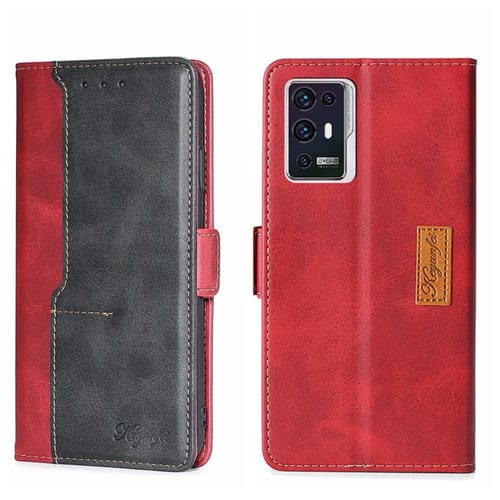 Funda de Cuero para ZTE Axon 30 Pro con Hebilla Lateral y Contraste (Rojo + Negro)