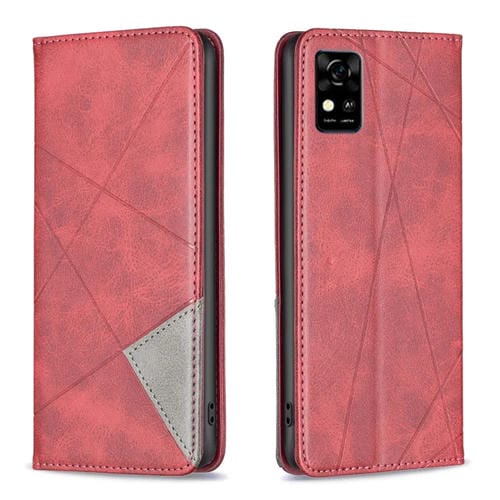 Funda para ZTE Blade A31 de Cuero Magnético Invisible Prismático (Rojo)