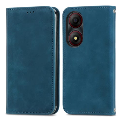 Funda de Cuero con Tapa Magnética para ZTE Blade A34 Retro Skin Feel (Azul)