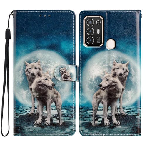 Funda de Cuero para ZTE Blade A52 con Dibujo Coloreado (Lobos Gemelos)