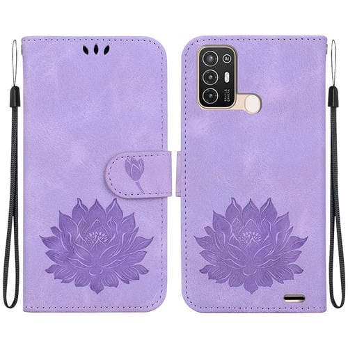 Funda de Cuero para ZTE Blade A52 con Relieve de Loto (Púrpura)