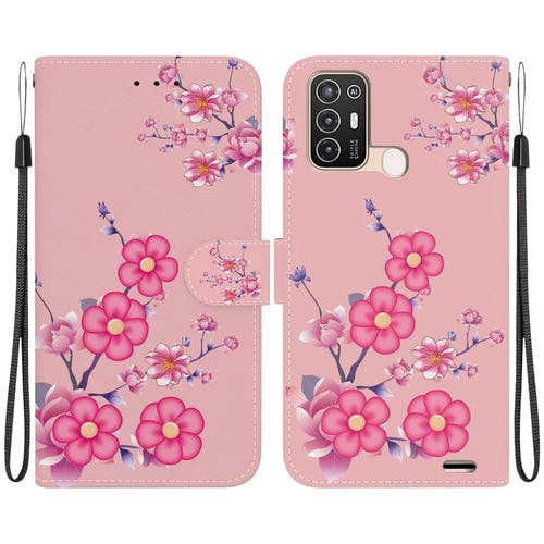 Funda de Cuero para ZTE Blade A52 con Dibujo Coloreado y Textura de Cristal (Flores de Cerezo)