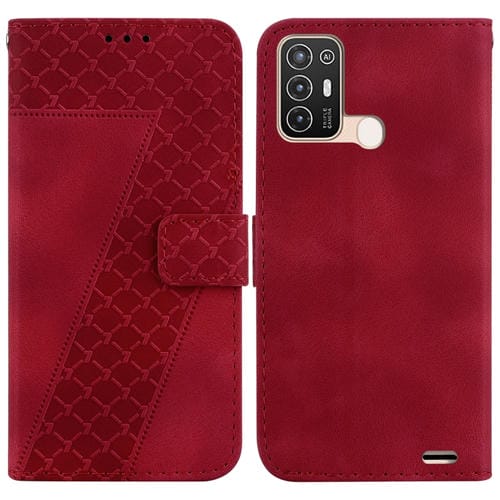 Funda de Cuero para ZTE Blade A52 en Relieve Forma de 7 (Rojo)