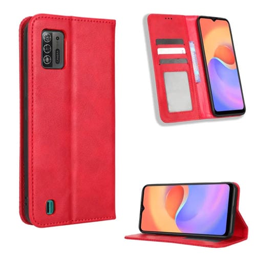 Funda de Cuero para ZTE Blade A52 Lite con Hebilla Magnética y Textura Retro (Rojo)