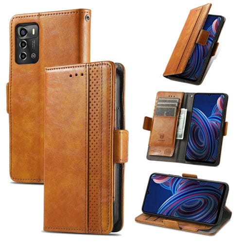Funda de Cuero Caseneo Splicing Dual Magnetic con Hebilla para ZTE Blade A72 4G (Caqui)