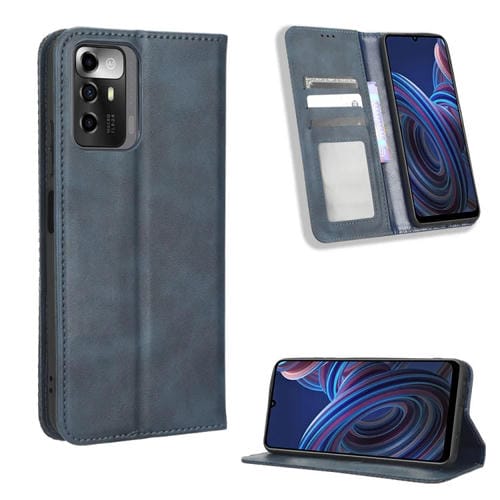 Funda de Cuero para ZTE Blade A72 5G con Hebilla Magnética y Textura Retro (Azul)