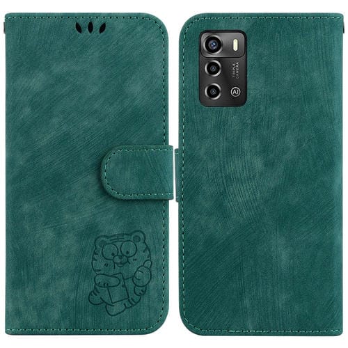 Funda de Cuero En Relieve para ZTE Blade A72 y V40 Vita Little Tiger (Verde)