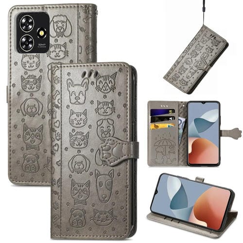 Funda para ZTE Blade A73 4G de Cuero con Relieve de Perro y Gato (Gris)