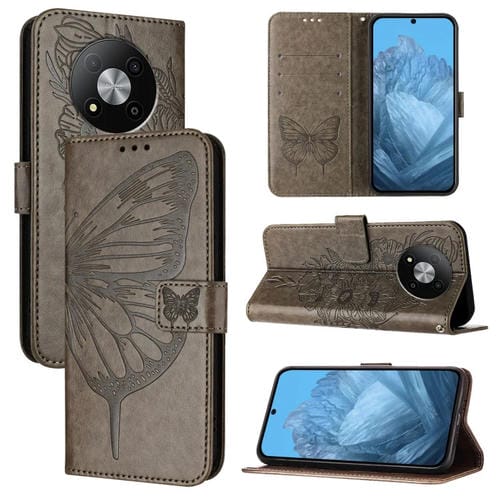 Funda de Cuero para ZTE Blade A73 5G con Mariposa en Relieve (Gris)