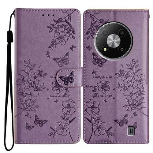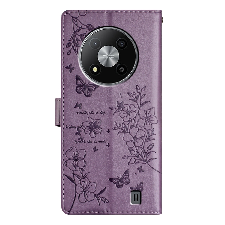 Funda para ZTE Blade A73 5G Cuero con Relieve Flor de Amor y Mariposa (Púrpura)