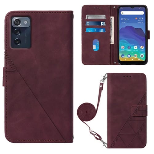 Funda de Cuero para ZTE Consumer Cellular Zmax 5G Crossbody con Tapa 3D En Relieve (Rojo Vino)