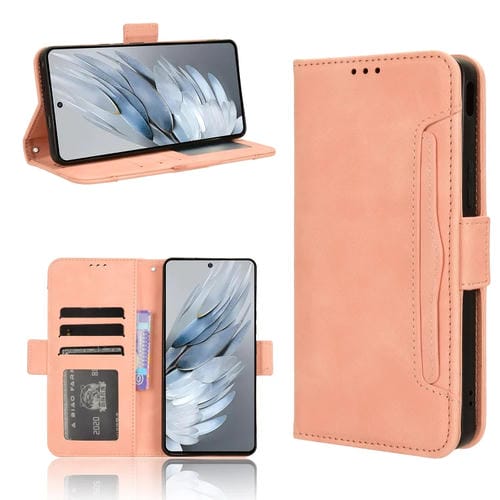 Funda para ZTE Nubia Z50S Pro Skin Feel con Textura de Pantorrilla y Ranuras para Tarjetas (Rosa)