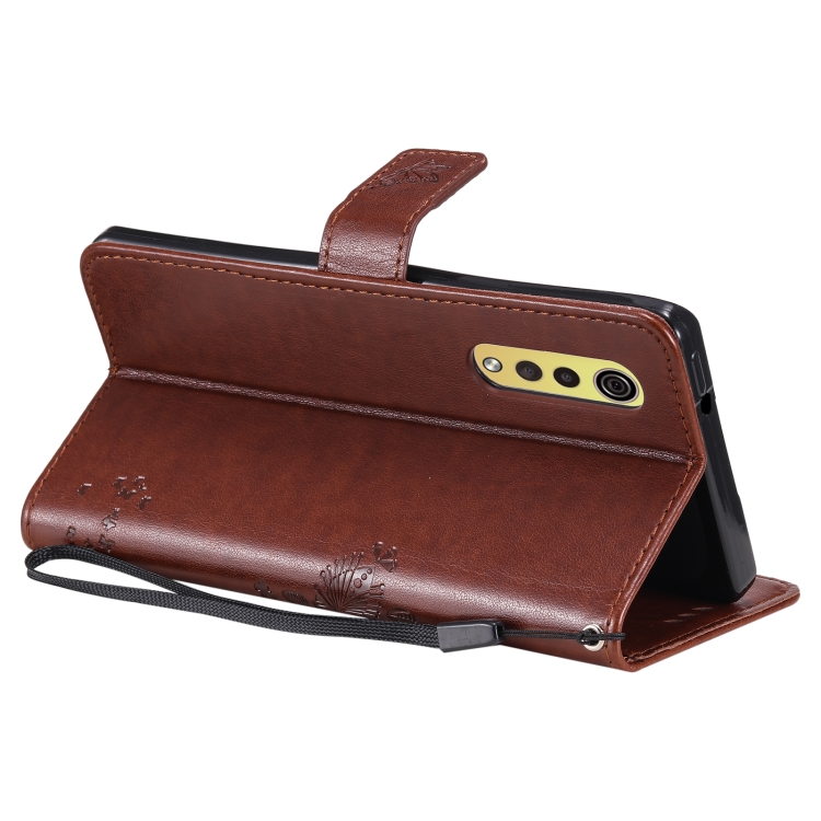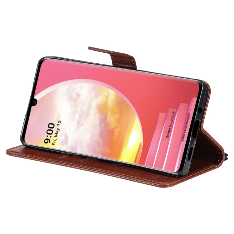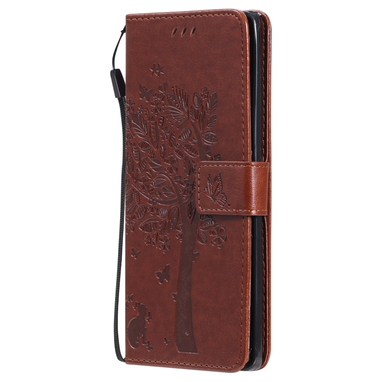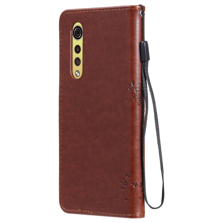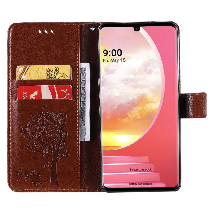 Funda de Cuero PU con Soporte y Tarjetero para LG Velvet 2 Pro (Brown) Patrón Árbol y Gato