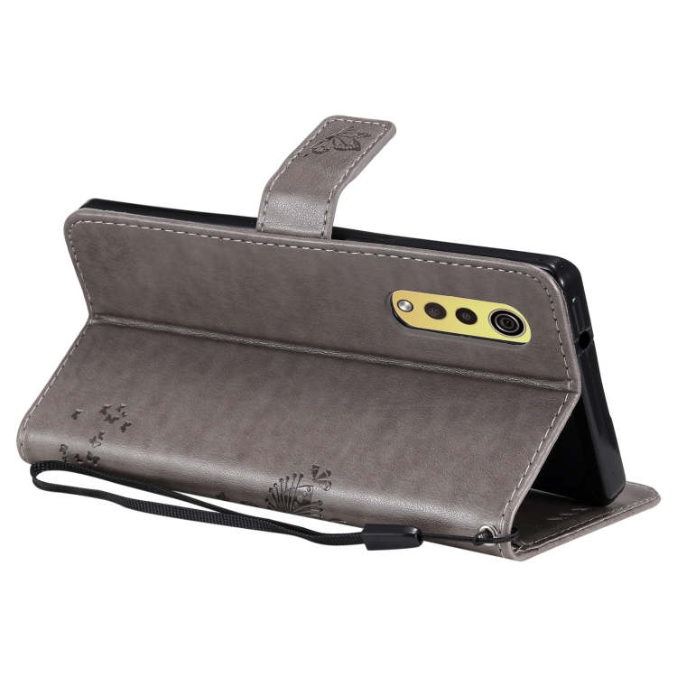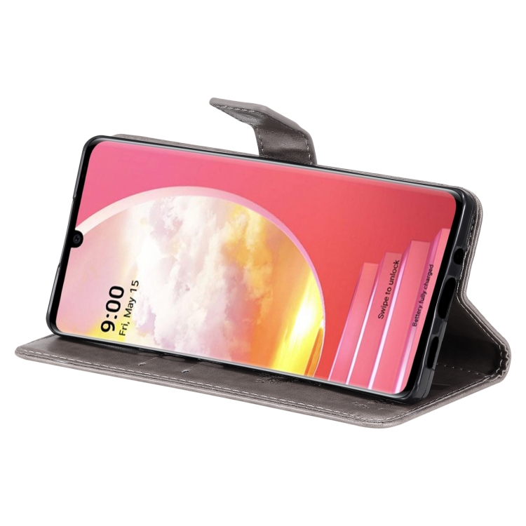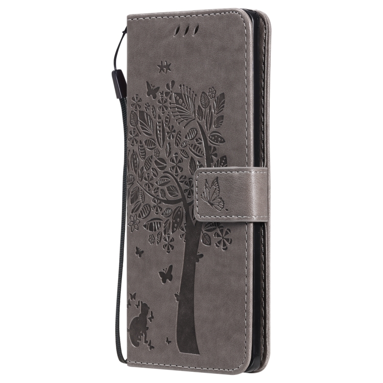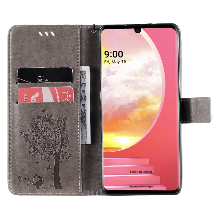 Funda de Cuero PU con Soporte, Tarjetero y Cordón para LG Velvet 2 Pro (Gray) con Patrón Árbol y Gato
