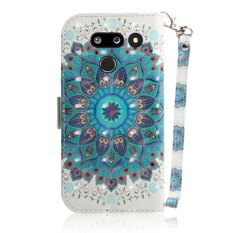 Funda de Cuero con Tapa Horizontal y Soporte para LG G8 Thinq (Paecock) con Patrón 3D y Ranuras para Tarjetas