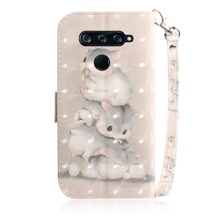 Funda de Cuero con Tapa Horizontal LG V40 Thinq Patrón 3D Dibujo a Color Soporte Ranuras y Billetera (Tres Ardillas)