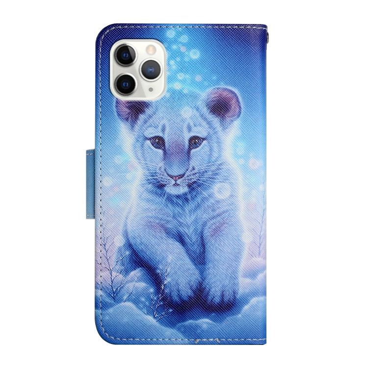 Funda Cuero Patrón Pintado Horizontal con Soporte y Ranura para Tarjeta y Billetera para iPhone 11 Pro (Little Leopard)