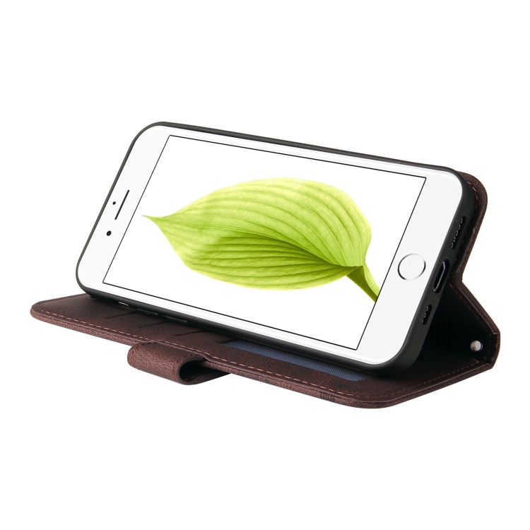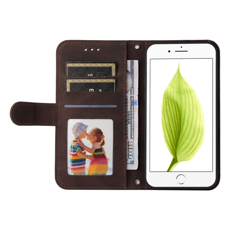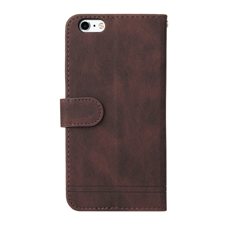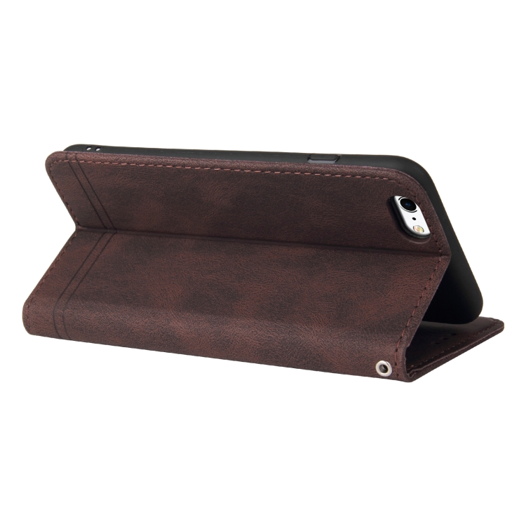 Funda de cuero Fee Life Tree para iPhone 6 / 6S con botón metálico, soporte, ranura para tarjeta, billetera, marco de fotos y correa (Brown)