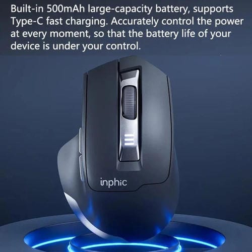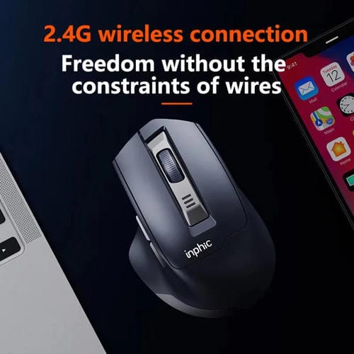 Ratón inalámbrico Inphic M9 2.4G, ergonómico, silencioso, para oficina y hogar (gris oscuro)