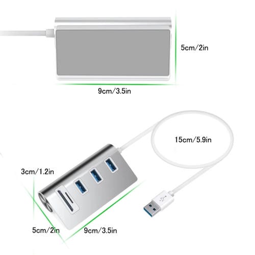 • Velocidad de transferencia USB 3.0 de hasta 5120 Mbps; incluye ranuras para Tarjetas SD y TF; protección integrada contra sobretensión, sobreCorriente, fugas y cortocircuitos; retrocompatible con USB 2.0 y 1.1; dimensiones de 9x5x3 cm; longitud del Cable de 15 cm
