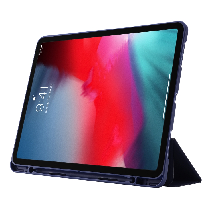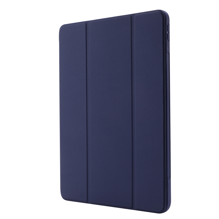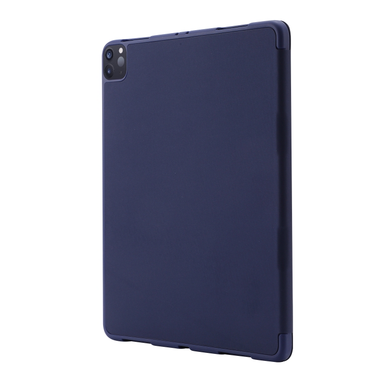 Funda de Cuero Skin Feel Pen Holder Tri-Fold para iPad Pro 12.9 2022/2021/2020/2018 (Azul Oscuro)
