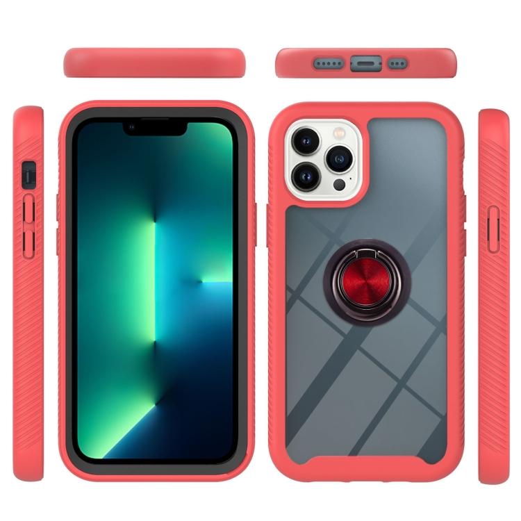 Funda para iPhone 14 Pro Max Starry Sky Solid Color Series PC + TPU con Soporte para Anillo y Función Magnética (Rojo)