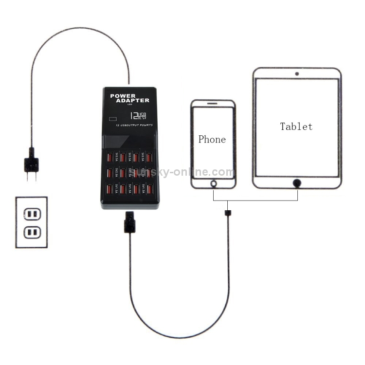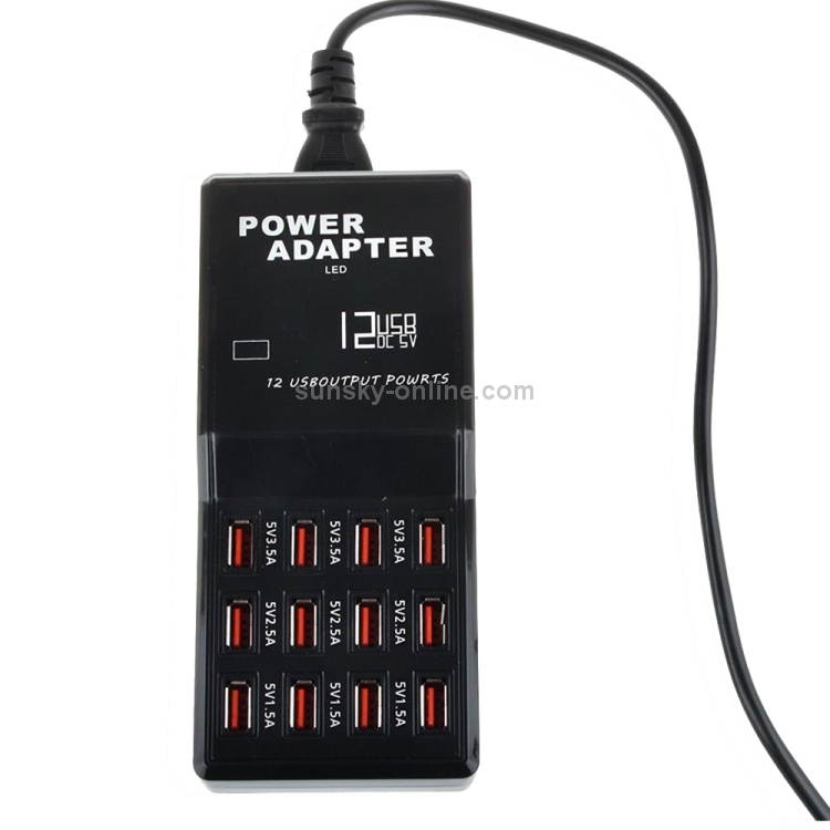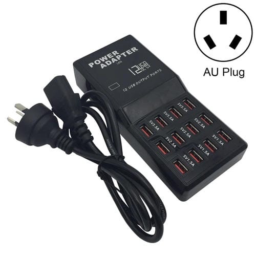 Base de carga rápida 12 puertos USB W-858 cargador inteligente escritorio AC100-240V (Negro)