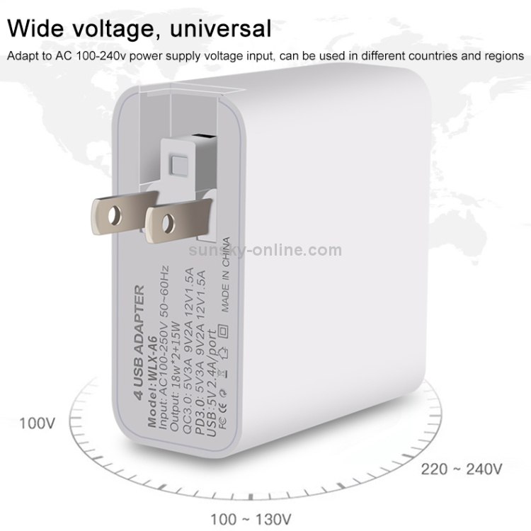 Adaptador de corriente Wlx-A6 cargador de viaje USB carga rápida 4 puertos (Au)