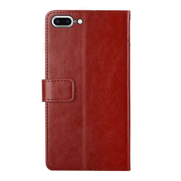 Funda de Cuero Y Costura para iPhone 8 Plus / 7 Plus con Flip Horizontal, Soporte, Ranuras para Tarjetas y Marco (Brown)