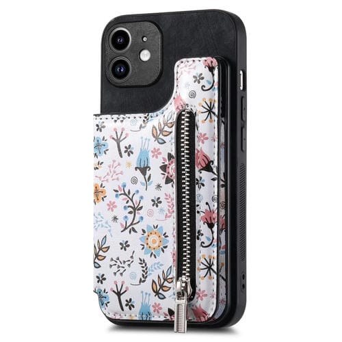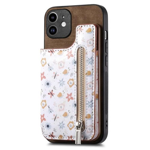 Funda Trasera para iPhone 11 con Billetera y Cremallera Pintada Retro (Marrón)