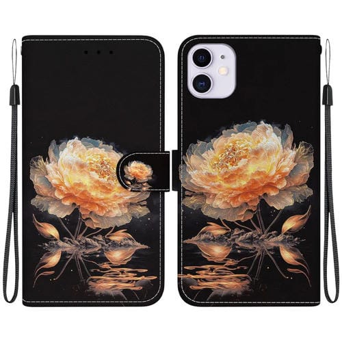 Funda para Teléfono iPhone 11 Cuero Dibujo Coloreado Textura de Cristal (Peonía Dorada)