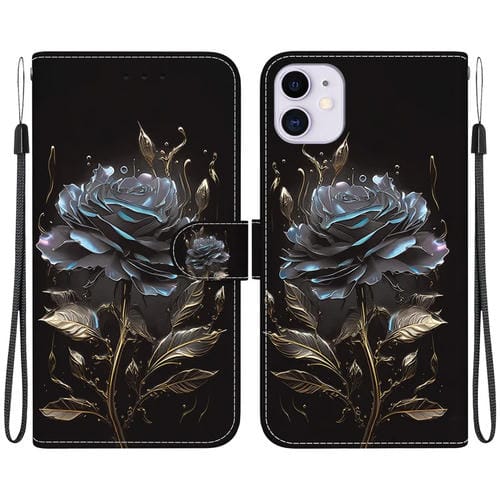 Funda de Cuero para iPhone 11 con Dibujo Coloreado y Textura de Cristal (Rosa Negra)