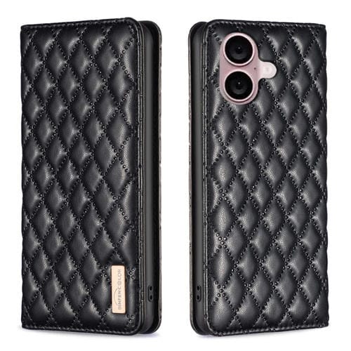 Funda de Teléfono para iPhone 16 Cuero con Tapa Vertical Diamond Lattice (Negro)