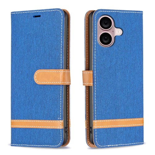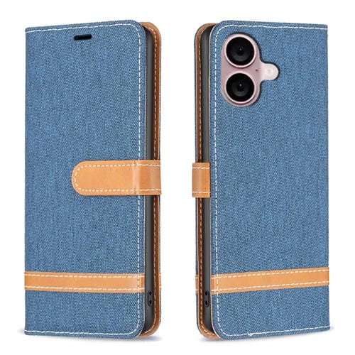 Funda para Teléfono iPhone 16 Cuero Textura Vaquera Bloques de Color (Azul Oscuro)