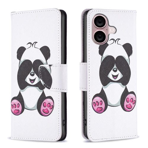 Funda de Cuero para iPhone 16 con Tapa y Patrón de Dibujo de Colores (Panda)