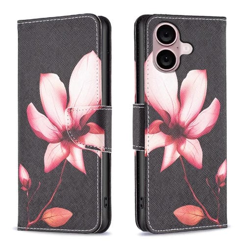Funda de Teléfono iPhone 16 Cuero con Tapa Patrón de Dibujo de Colores (Lotus)