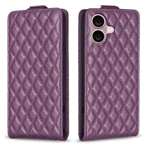 Funda de Teléfono iPhone 16 Cuero con Tapa Vertical Diamond Lattice (Púrpura Oscuro)