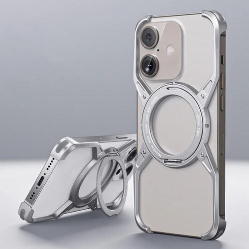 Funda para Teléfono Aleación de Aluminio iPhone 16 Rotación 360 (Plateada)