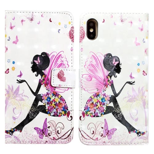 Funda para teléfono iPhone Xs Max Cuero dibujo 3D en relieve al óleo (Hada de Flores)