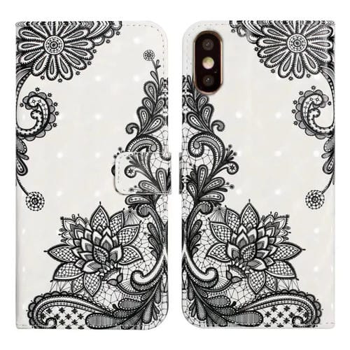 Funda de Teléfono iPhone X Xs Cuero Dibujo 3D Relieve al Óleo (Flor de Encaje)