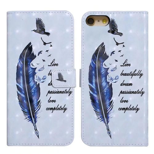 Funda para Teléfono iPhone 7/8/SE 2022 Cuero Dibujo 3D Relieve al Óleo (Pluma Azul)