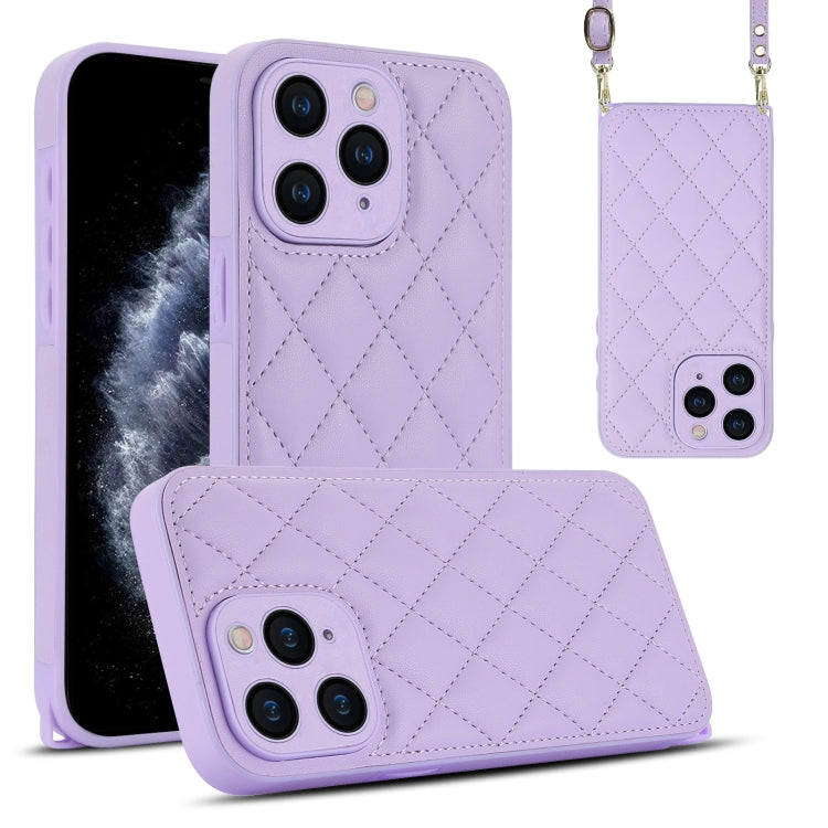 Estuche para Teléfono iPhone 11 Pro Max con Textura Rómbica y Cordón Doble (Púrpura)