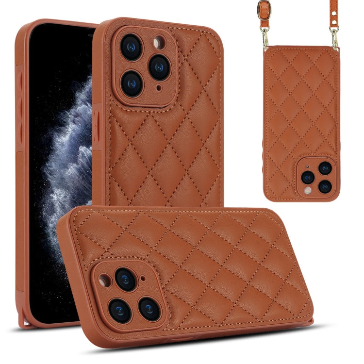 Estuche para Teléfono iPhone 11 Pro Max con Textura Rómbica y Cordón Doble (Marrón)
