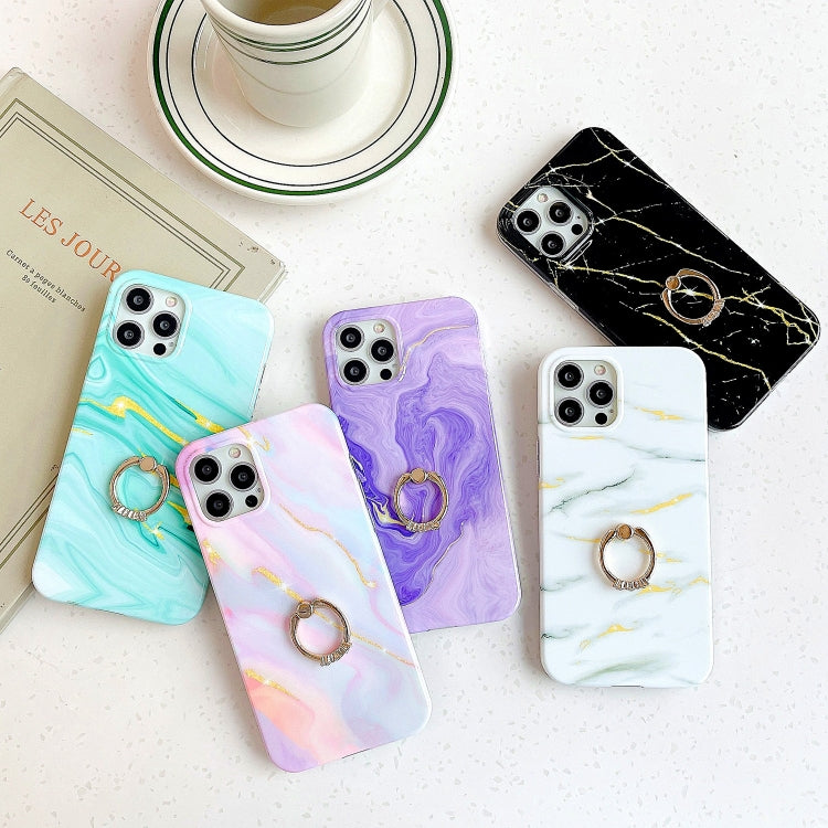 Funda para iPhone 11 Pro Max Fleeled TPU Mármol con Soporte de Anillo Metálico (Rosa)